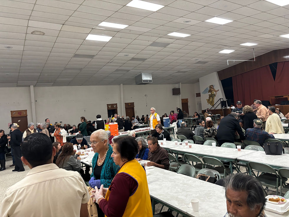 The Anthony Lions club hosted a Community Feast for the community of Anthony on Sunday, November 23rd, from 1:00 pm to 5:00 pm. The event took place at the St. Anthony Catholic church parish hall. The cooks for the event were the Knights of Columbus - these folks work very well and put together a delicious meal. Lion Dutch and Susie from Los Leones de Mesilla were on site assisting on Saturday to set up the parish hall with table and chairs and returned Sunday to help. The honor roll Gadsden high school students were present on Saturday to help and on Sunday, they helped with slicing 100 pumpkin pies and keeping the ice tea cups filled and ready. Lion Hector Giron thanked all who made this possible to include Lion’s clubs who generously donated items needed or provided monetary donations. Together - WE Served!