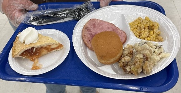 Joy Junction had its annual Christmas Dinner for the Hungry on December 19, 2025. It was held at the downtown Convention Center in Albuquerque, NM. The Lions Club Members were invited to serve as greeters at the entrance. There were 113 volunteers to serve the guests in the dining hall. There were 587 guests in attendance, along with 32 dogs. The guests enjoyed a ham dinner with apple pie for dessert, and there were dog treats for the pets. Coffee, tea, and water were served as beverages. Warm clothing was available for everyone. Toys for the children were also available for Christmas gifts. Santa and his helper had fun with the parents and children.